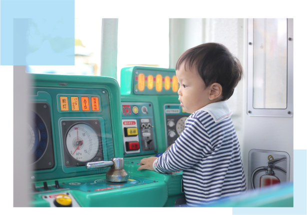 6ヶ月のお子さまからご利用いただけるプレイルームには、さまざまな遊具を用意しています。 また、外には公園があるのでボールやフリスビーなどのレンタルも行っています。